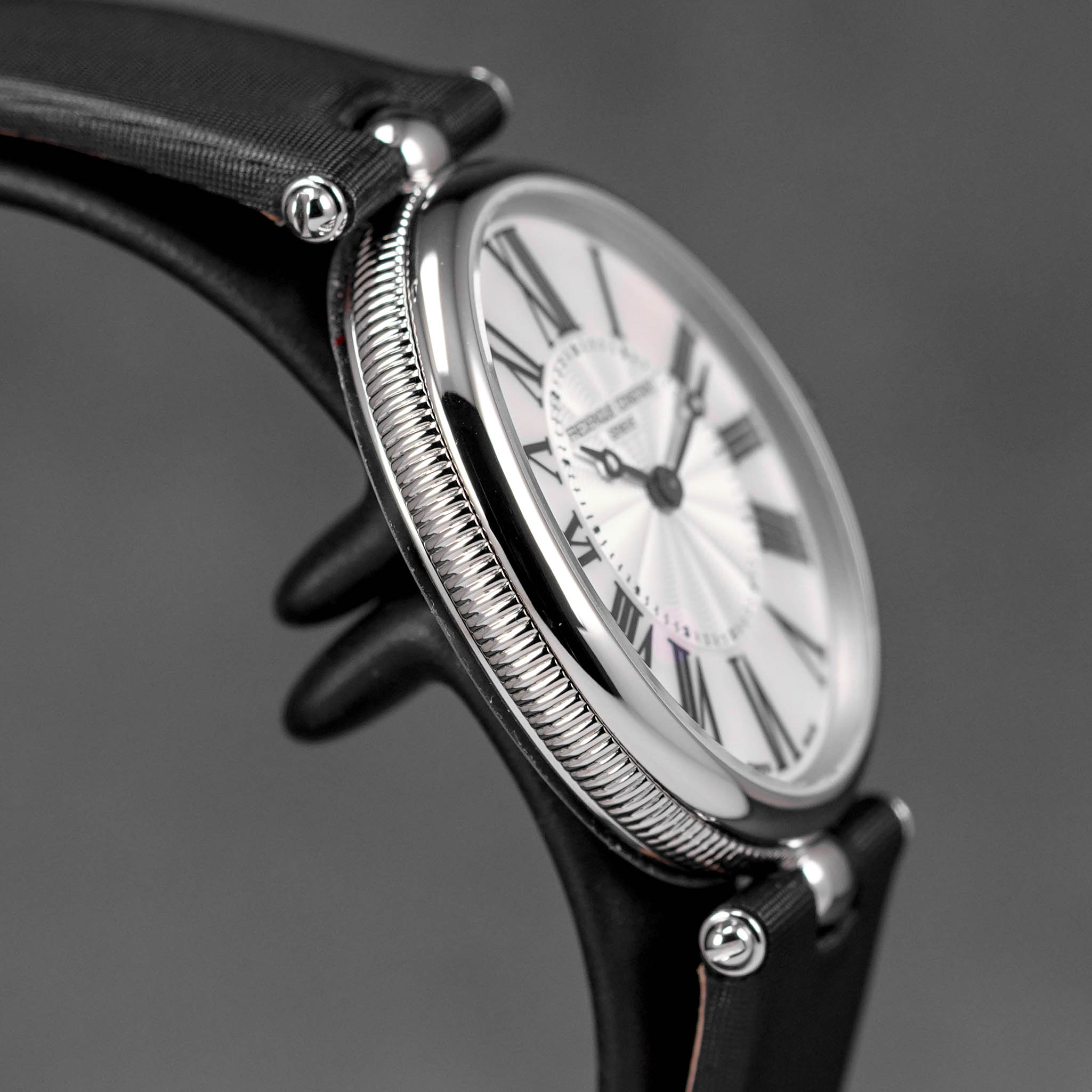 FREDERIQUE CONSTANT CLASSICS ART DECO OVAL STEEL MOP DIAL LEATHER STRAP